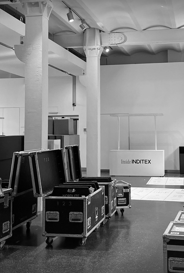 Project by and collaboration with The Y. Set design developed to represent all Inditex brands within a single space for an internal employer event.