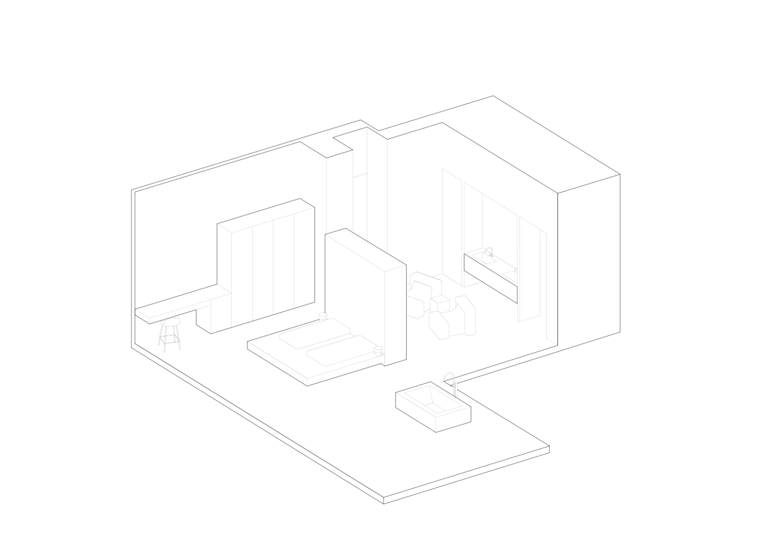 Project developed in Valencia, together with architects Camila Mena and Lula Giordano. Each suite includes a kitchen, living area, and workspace, with modular design and timeless materials creating a warm, flexible atmosphere.